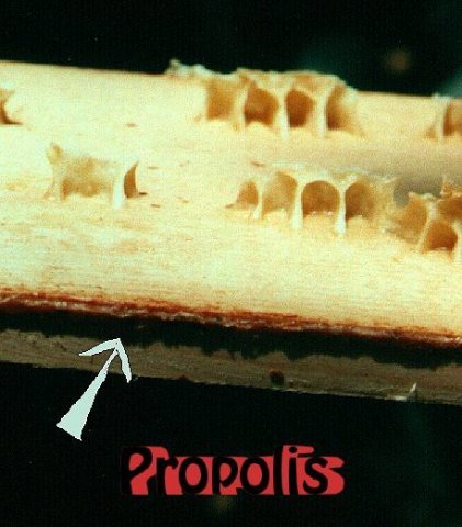 Propolis ist ein von Bienen hergestelltes Produkt, ein Gemisch aus vielen unterschiedlichen harzigen Stoffen mit antibiotischer und antimykotischer Wirkung, deren Zusammensetzung stark variieren kann. Propolis war bis vor kurzem nur wenigen bekannt, aber schon Plinius und Dioskorides wussten von seiner Wirkung. Da in einem Bienenstock die Insekten auf engstem Raum bei etwa 35 °C und hoher Luftfeuchtigkeit zusammenleben, herrschen dort ideale Bedingungen für die Ausbreitung von Krankheiten. Die Bienen sammeln das Harz verletzter Bäume und verwenden es zum Auskitten der Ritzen und Spalten im Bienenstock. Auch Fremdkörper werden damit einbalsamiert. So schützen sie ihr „Haus“ vor Schädlingen aller Art, wie toten Bienen und anderen Keimherden. Propolis ist ein hochwirksames Antibiotikum und auch Antimykotikum, ohne all’ die Nebenwirkungen des „normalen“ Antibiotikums und bewirkt keine Resistenz im Körper. Die Forschung findet fast täglich neue Wirkstoffe im Propolis, die sogar Viren und resistente Bakterienstämme bekämpfen. Das Pulver kann äusserlich, auch mit einer Crème vermischt, gegen Wundinfektionen, Hämorrhoiden, Akne, Schuppenflechte, Tennisarm, Nervenentzündungen und Ischias eingesetzt werden. Darüber wurden schon Bücher geschrieben (z.B. „Doktor Biene“ von Paul Uccusic). Propolis im Wechsel mit Teebaumöl oder Grapefruitkern-Extrakt ist äusserst erfolgreich.